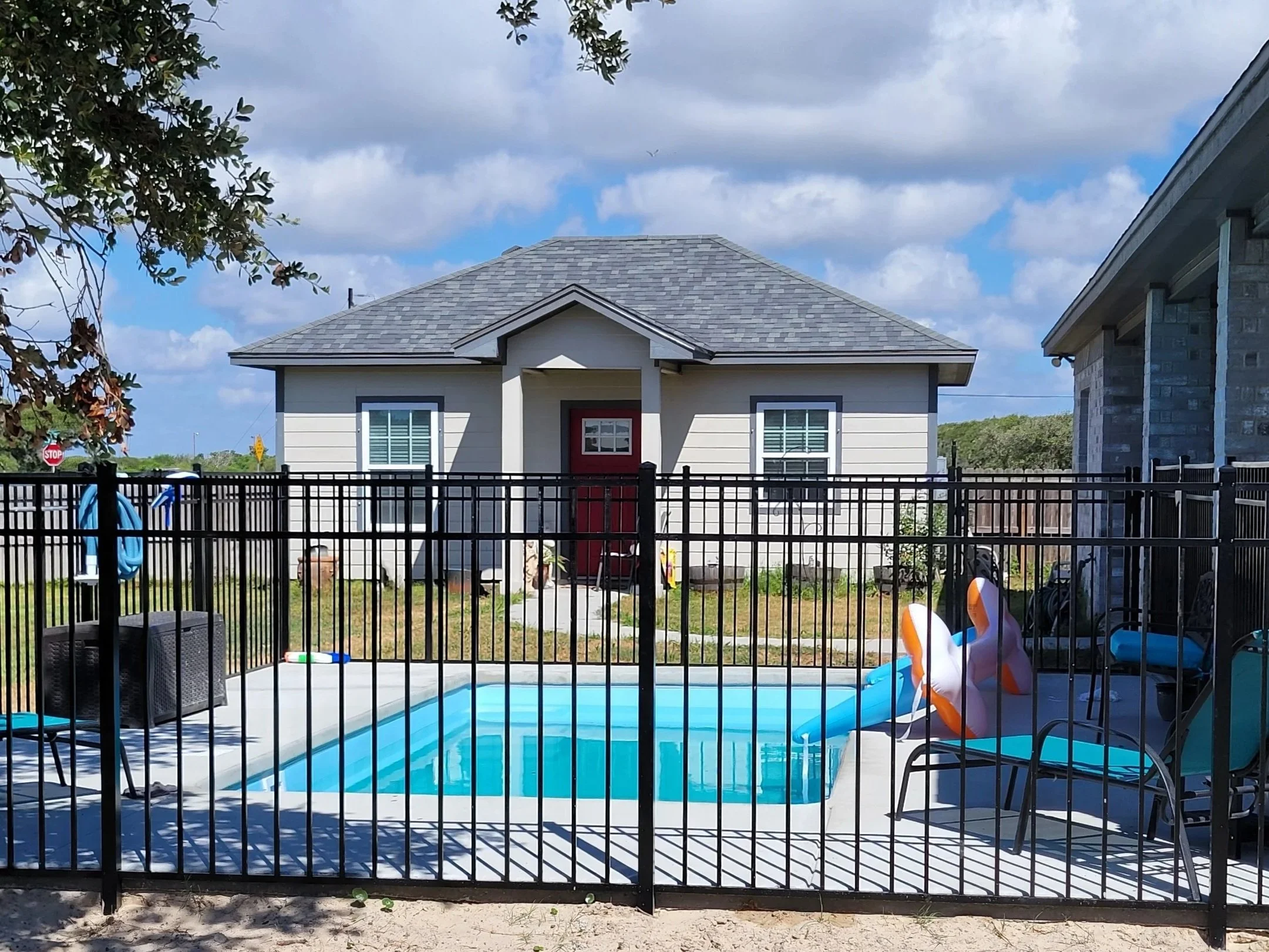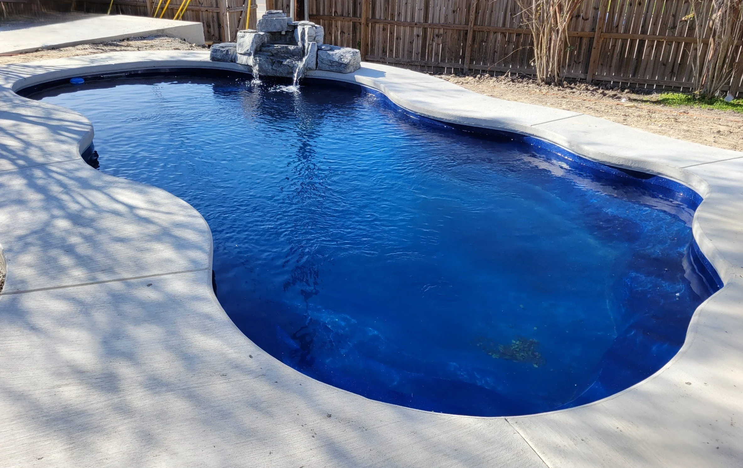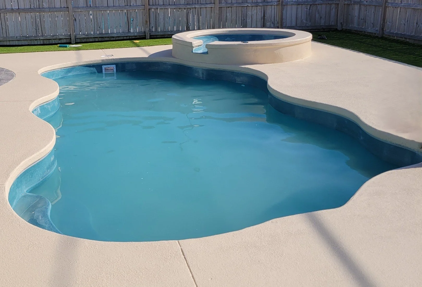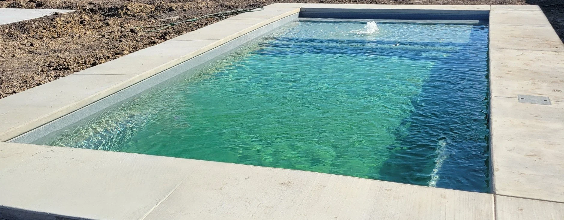 Optional surrounds and features such as decking, fencing, turf, and travertine coping